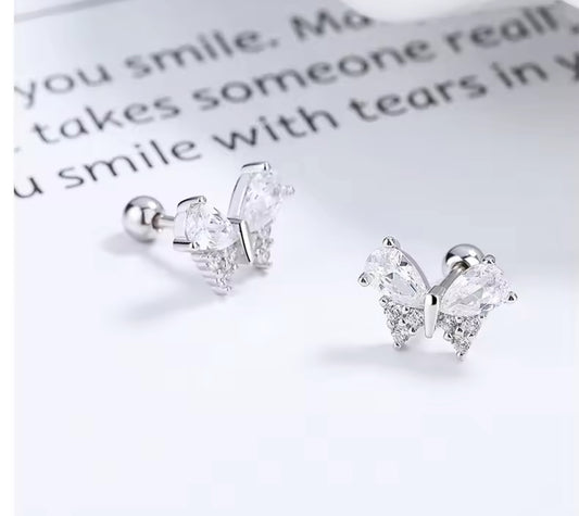 Crystal Silver / Gold Dainty Butterfly Stud Earrings