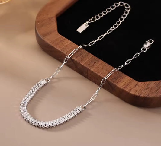 Paperclip Tennis Chain Emerald Cut Womens Bracelet Gold / Silver