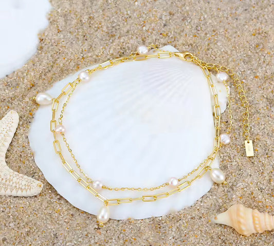 Pearl Layered Sterling Silver / Gold Chain Anklet