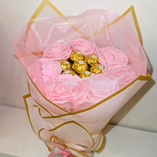 Ferrero Rocher Chocolate Rose Bouquet Pink & Cream
