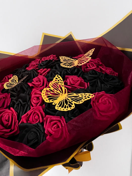 Red & Black Rose Bouquet With Gold Butterfly’s