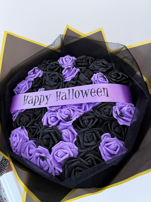 Happy Halloween Purple & Black Spider Rose Bouquet Decor