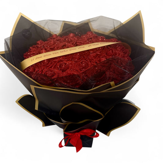 Luxury Red Glitter Rose Bouquet With High End Wrapping Personalised Gift