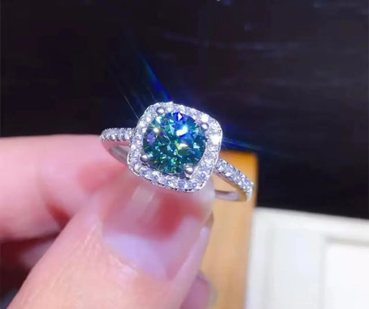 0.5CT Green Moissanite Womens Engagement Ring