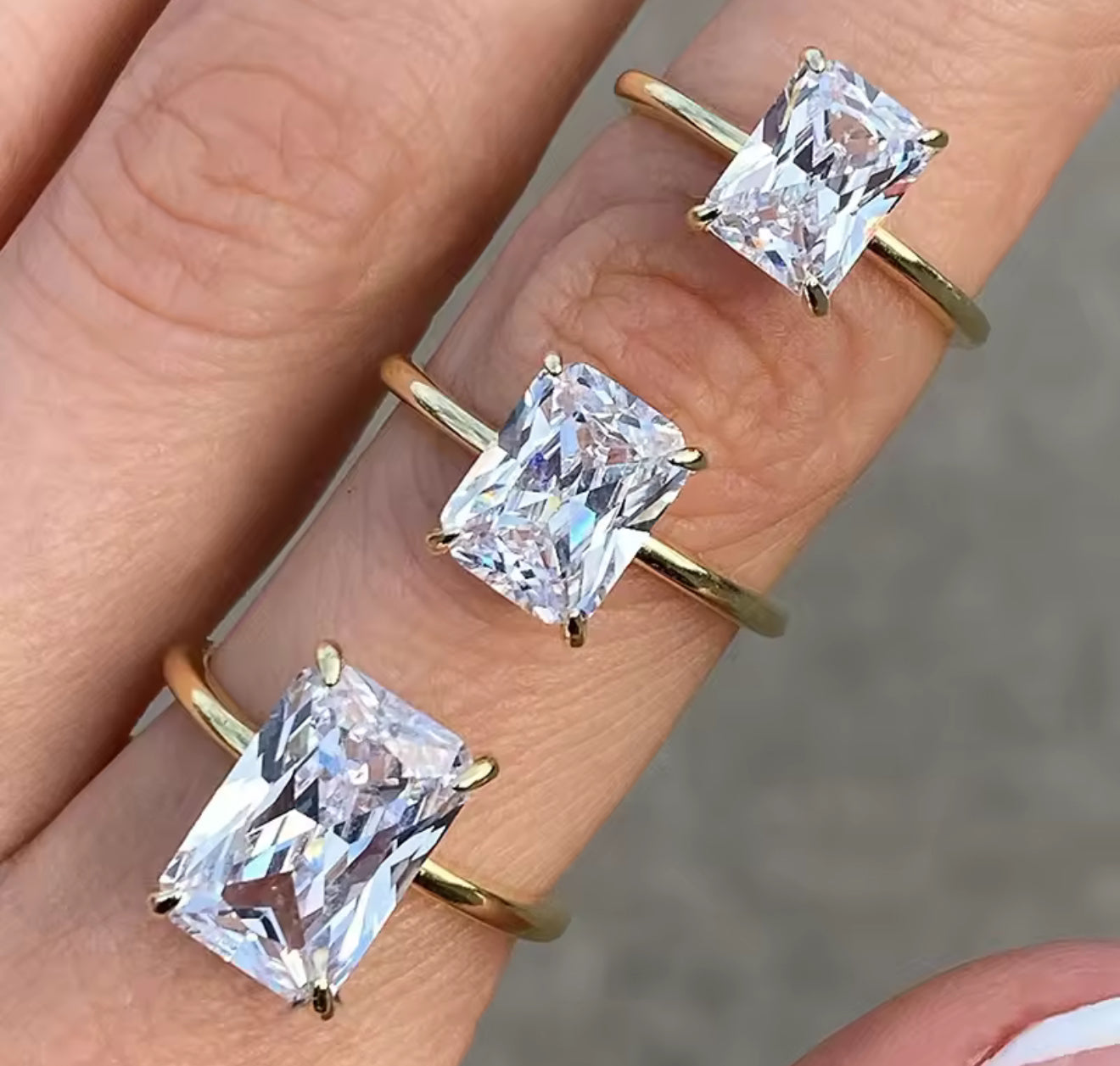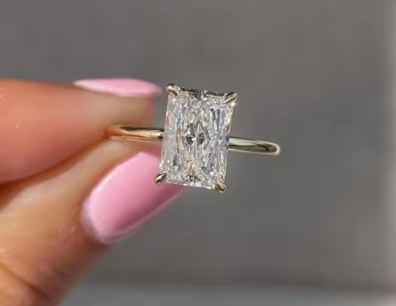 1,2,3 Carat Radiant Cut Moissanite Womens Engagement Ring