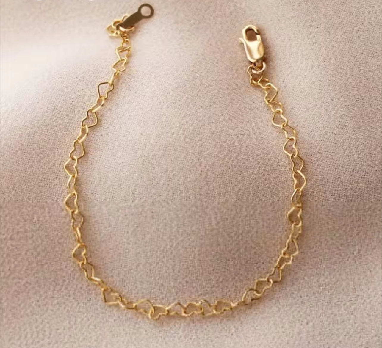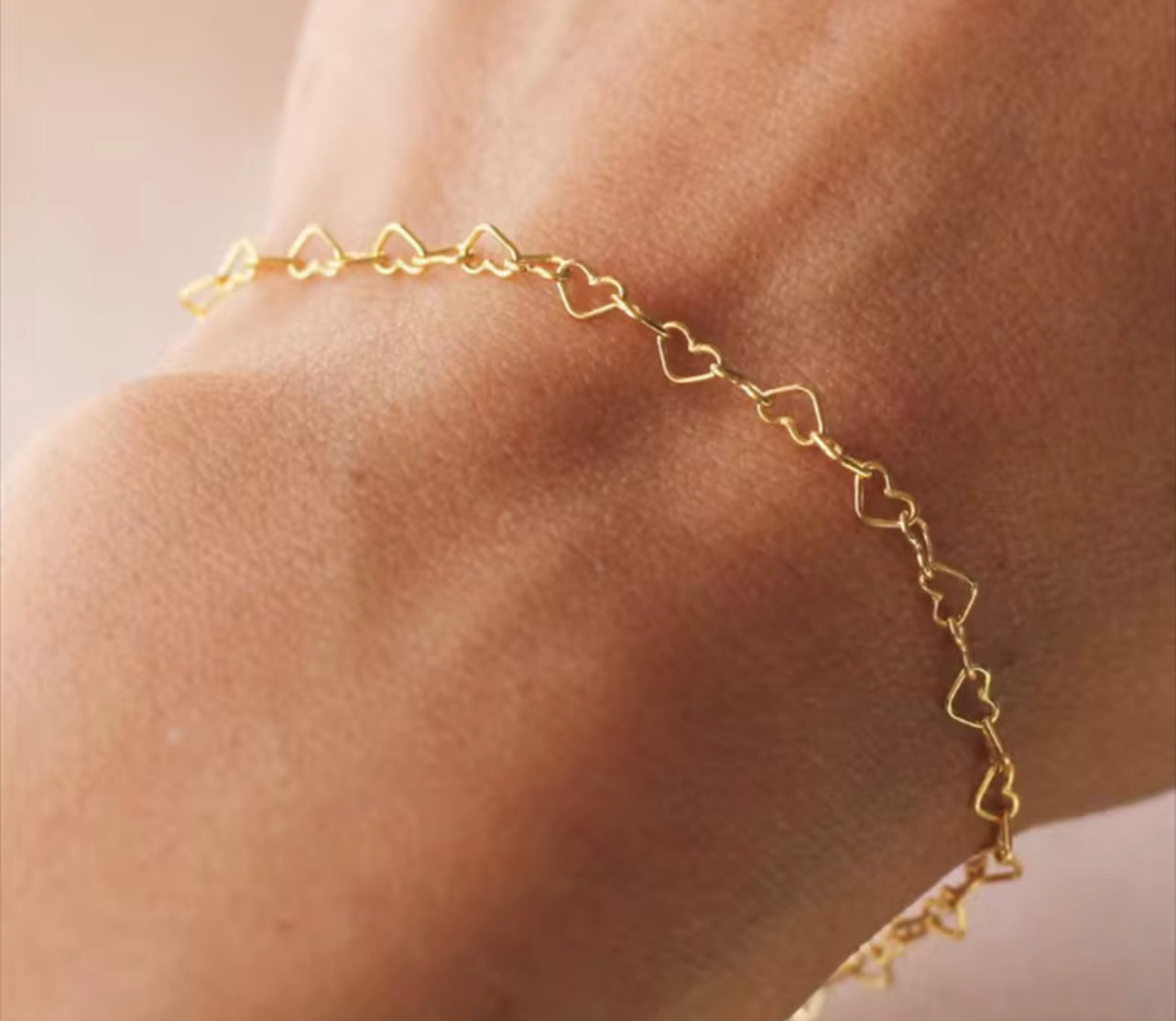 14K Gold Love Heart Dainty Womens Bracelet