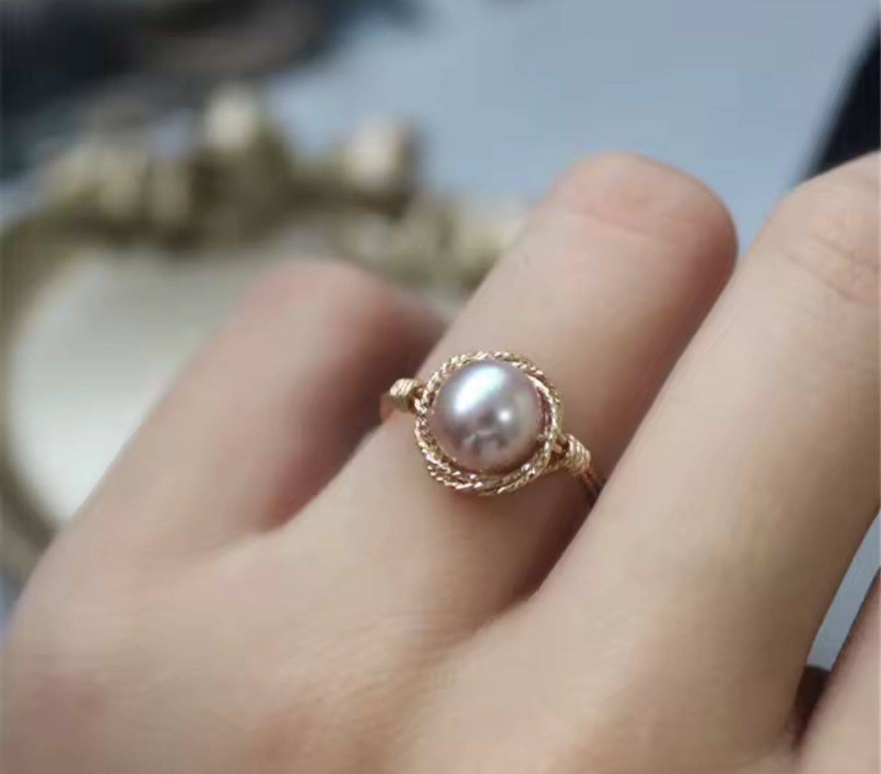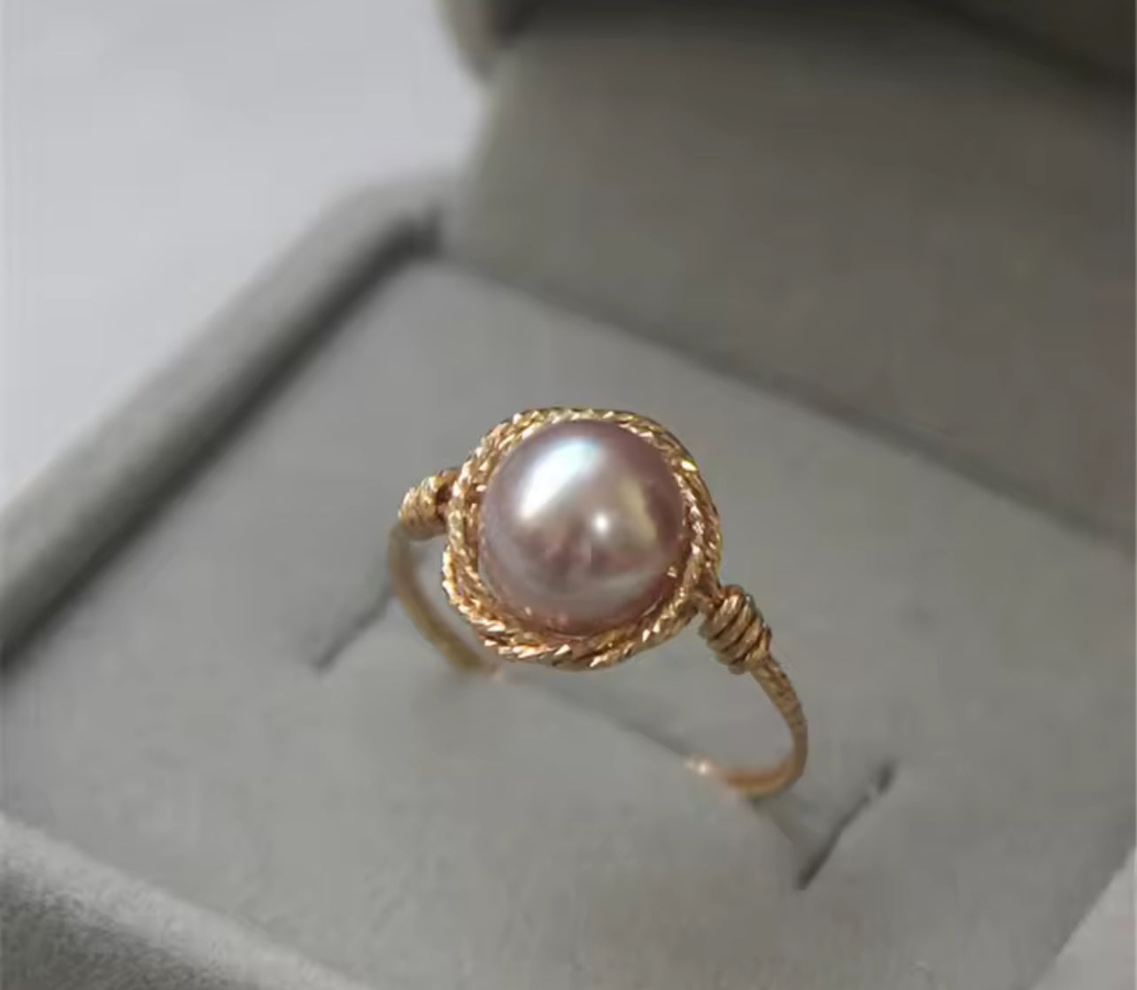 This 14K gold ring boasts a vintage style, featuring a lilac natural pearl. Made with 100% tarnish-free material, it's a timeless addition to any jewelry collection. Comes in a lovely gift box for a perfect present.