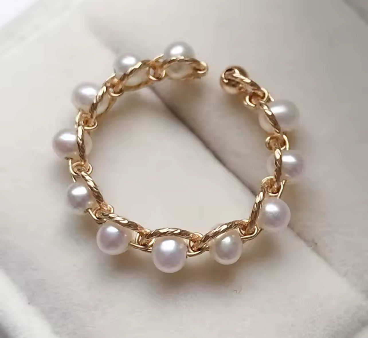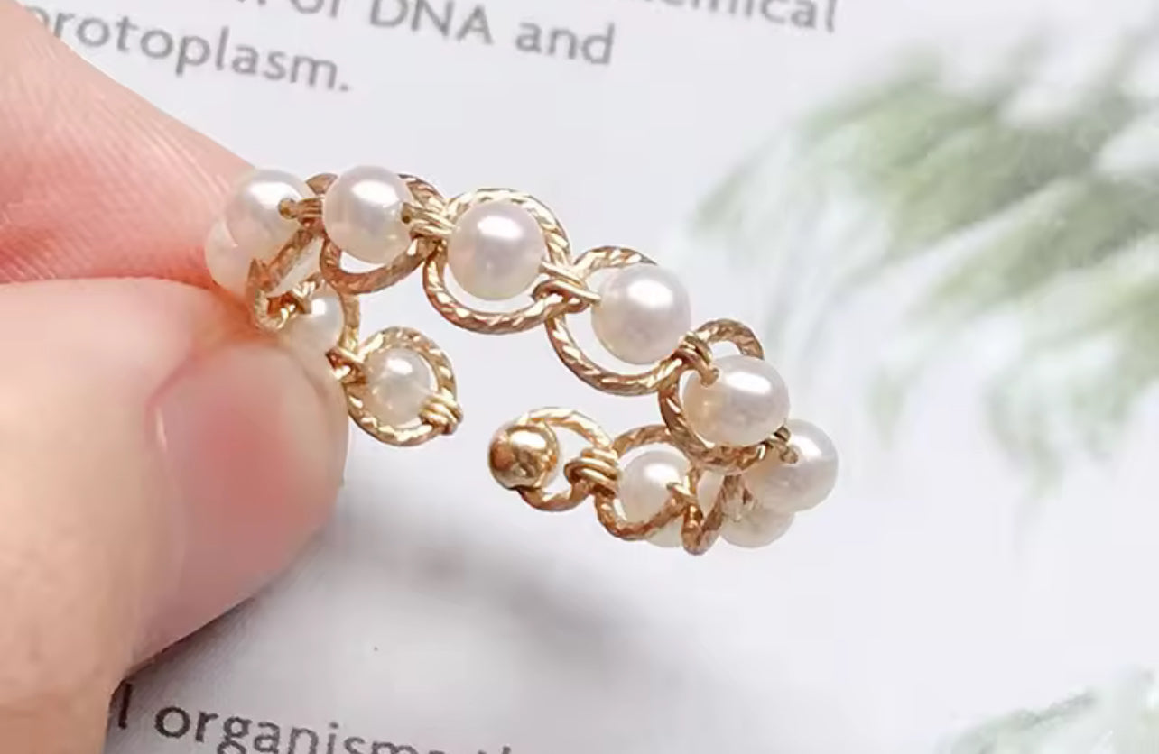 Elevate your style with our 14K Gold filled Ring. Made of high-quality gold fill, this ring boasts of natural white pearls band design and is adjustable to size. With its hypoallergenic and tarnish-resistant properties, this ring is both stylish and practical. Upgrade your jewelry collection today.