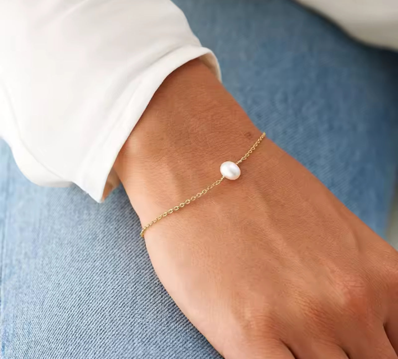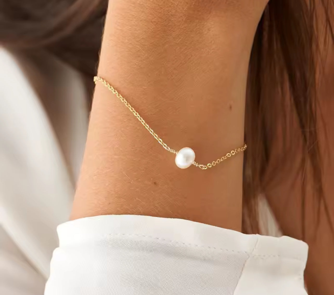Expertly crafted and elegant, our 14K Gold Natural White Pearl Womens Bracelet is the perfect addition to any outfit. Made with 14k gold filled material and finished with a natural white pearl, this bracelet exudes sophistication and class. Available in four sizes and packaged in a lovely gift box.