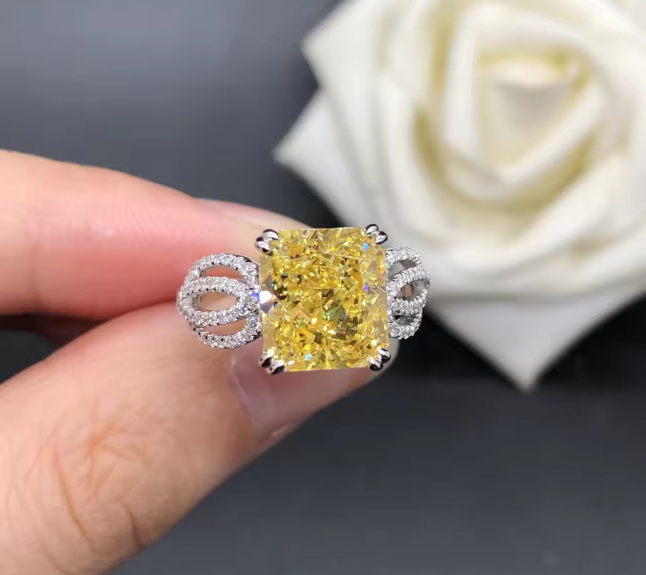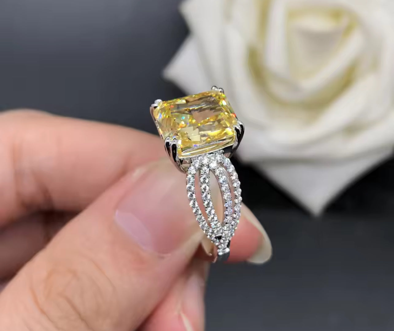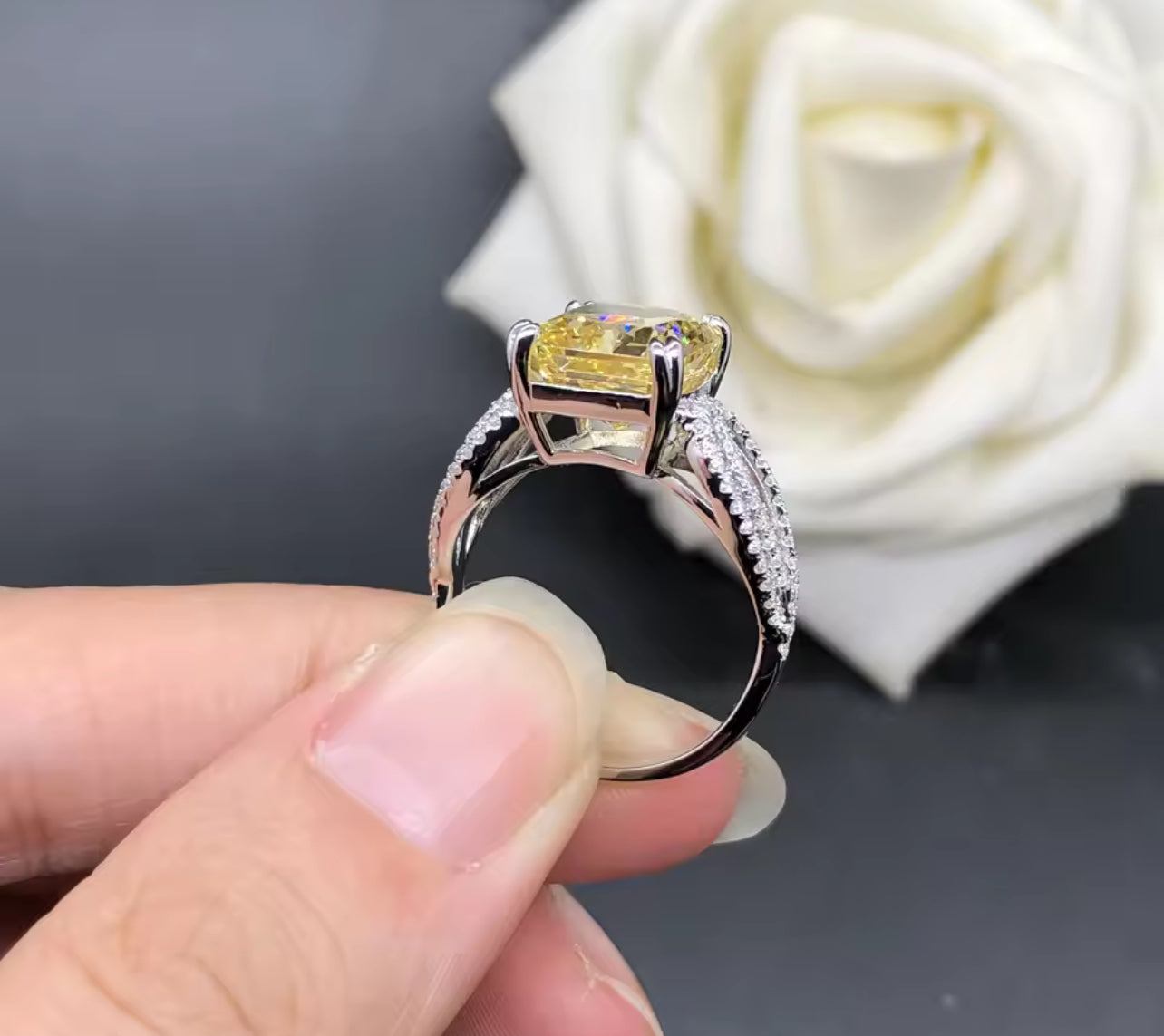 Expertly crafted from 18K white gold, this breathtaking ring showcases a 4ct cushion cut yellow diamond for a striking, luxurious look. Comes with a lovely gift box to make the perfect gift for any special occasion. Elevate your jewelry collection with this exquisite piece.