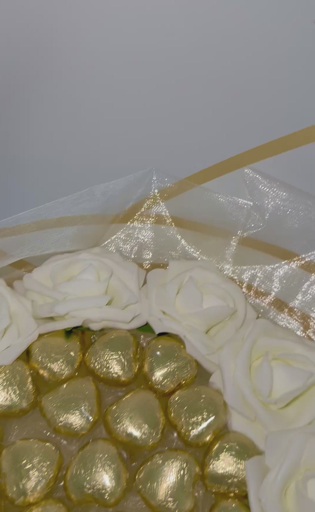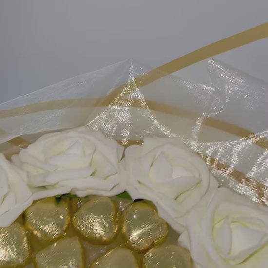 Chocolate Love Hearts Rose Bouquet Gold & Cream