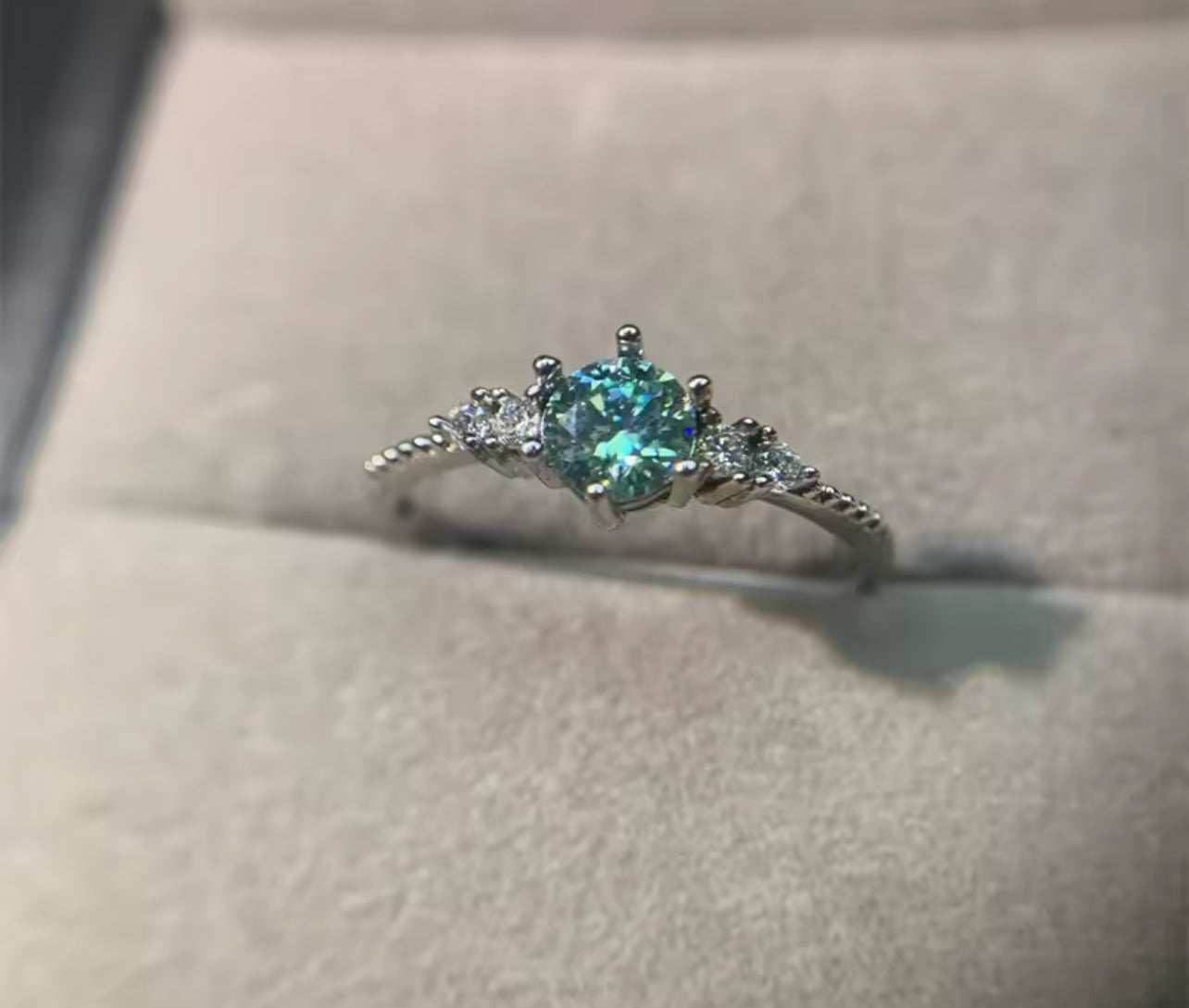 Green Moissanite 6 Claw Silver Engagement Ring