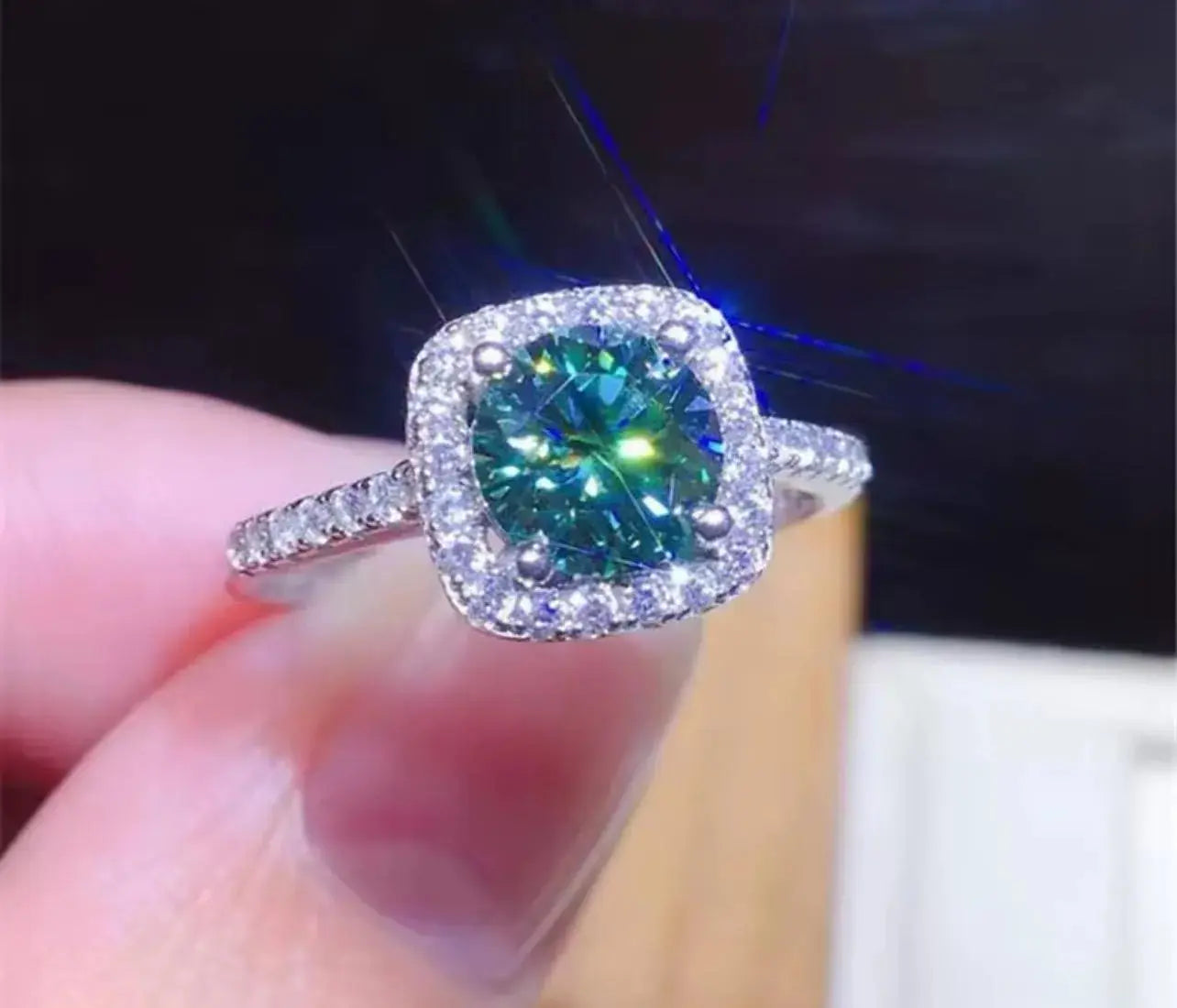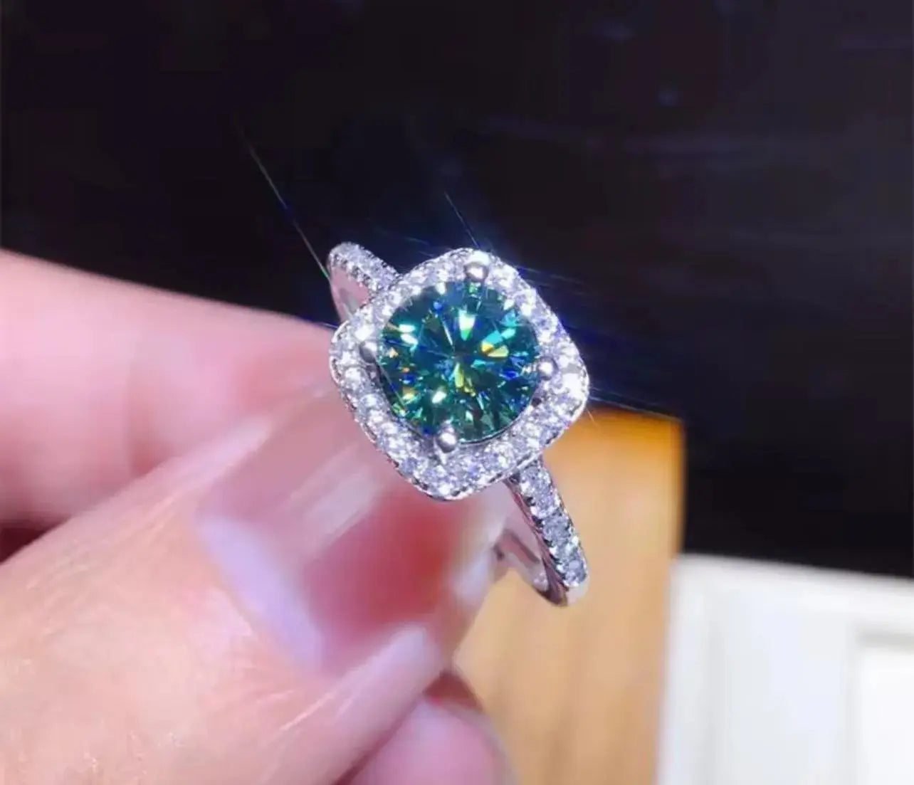 Green Moissanite Sterling Silver Womens Engagement Ring