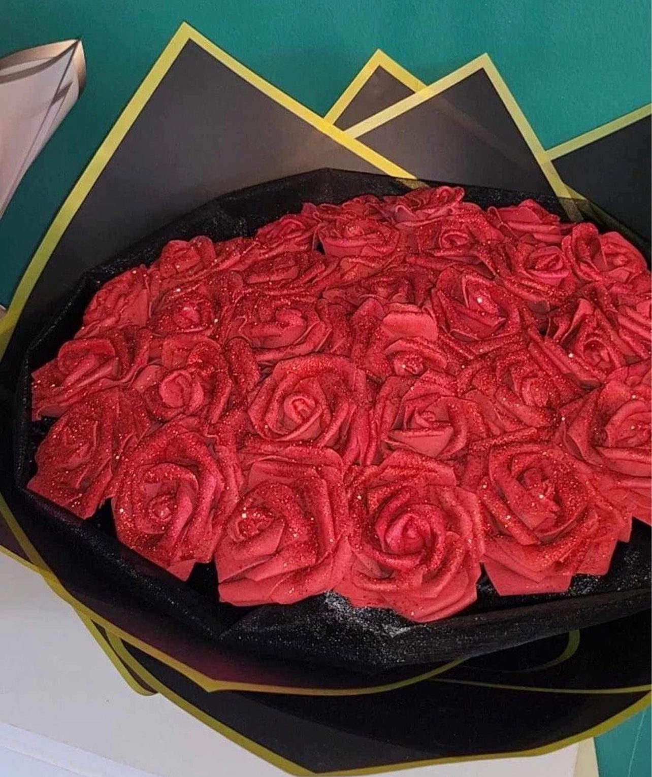 Our luxury glitter rose bouquets are available in striking pink or deep red shades, and come in a choice of 30, 40 or 50 roses - giving you the flexibility to choose the perfect size for your needs.