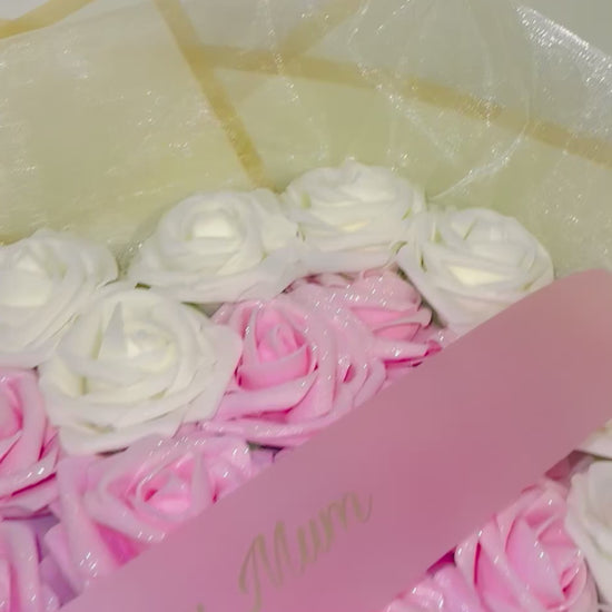 Love Heart Pink & Cream Glitter Rose Personalised Bouquet