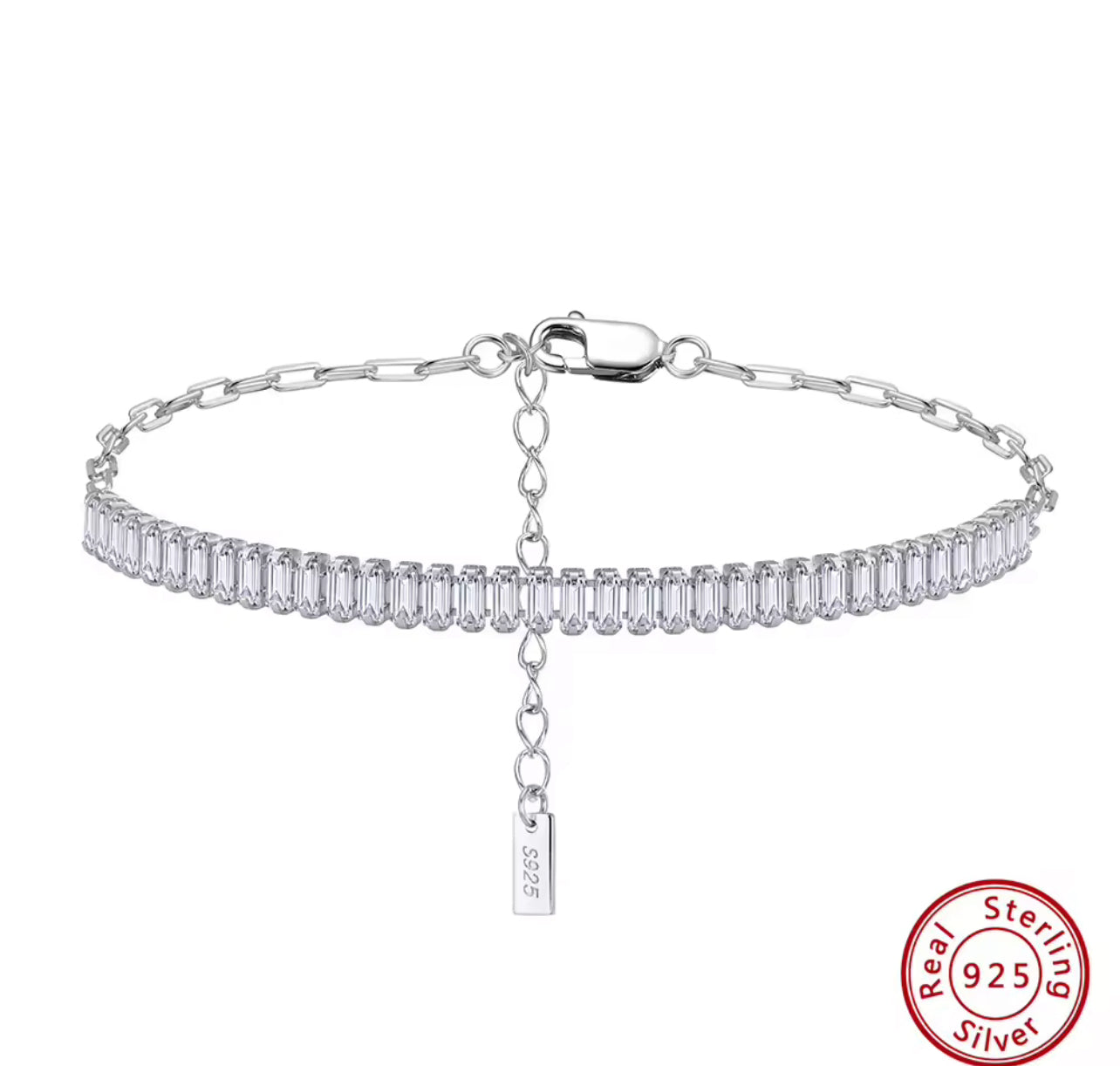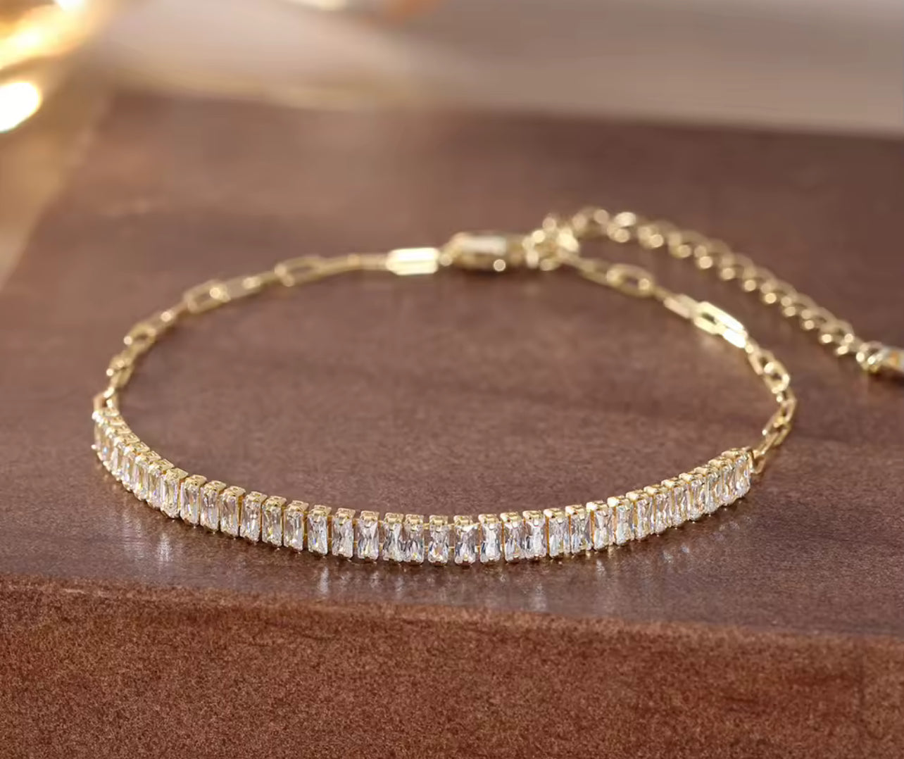 Paperclip Tennis Chain Emerald Cut Womens Bracelet Gold / Silver