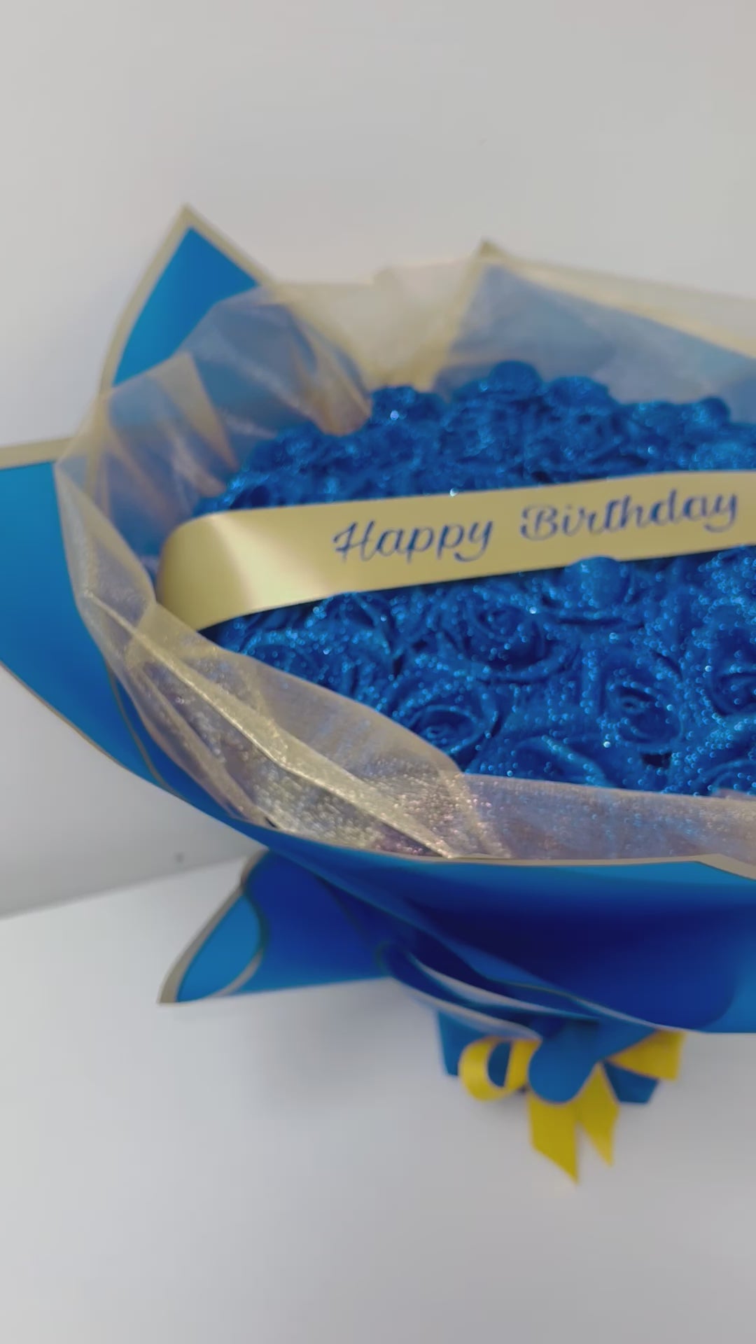 Personalised Message Blue & Gold Glitter Rose Bouquet Gift