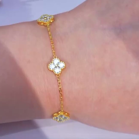 Indulge in the luxury you deserve with our stunning Clover Bracelet—where elegance meets affordability. Shop now and experience the brilliance of Moissanite!