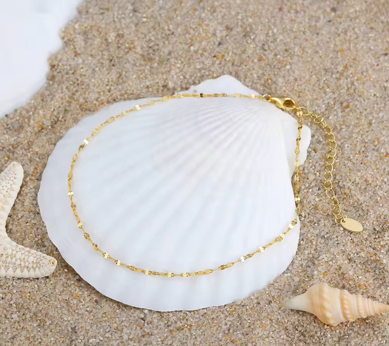 These elegant anklets, crafted from sterling silver or tarnish free 14k gold plating, are perfect for both holiday and everyday wear, measuring 21cm with an adjustable extension of 5cm for a comfortable fit.